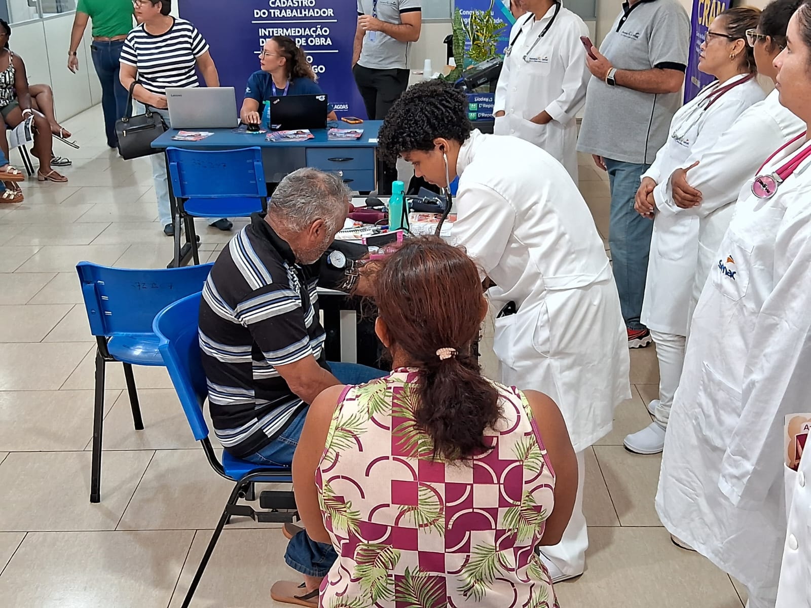 “Hoje tivemos nossa equipe de docente e alunos do curso Técnico de Enfermagem e equipe comercial, atendendo a ‘Semana do Trabalhador’, na ‘Casa do Trabalhador de Três Lagoas’. Teve palestra sobre hipertensão e aferição de pressão arterial, com divulgação dos cursos do programa MS Qualifica e de outros que estão com matrículas abertas”, explica o gerente da unidade do Senac Três Lagoas, Ivan Murgi.
