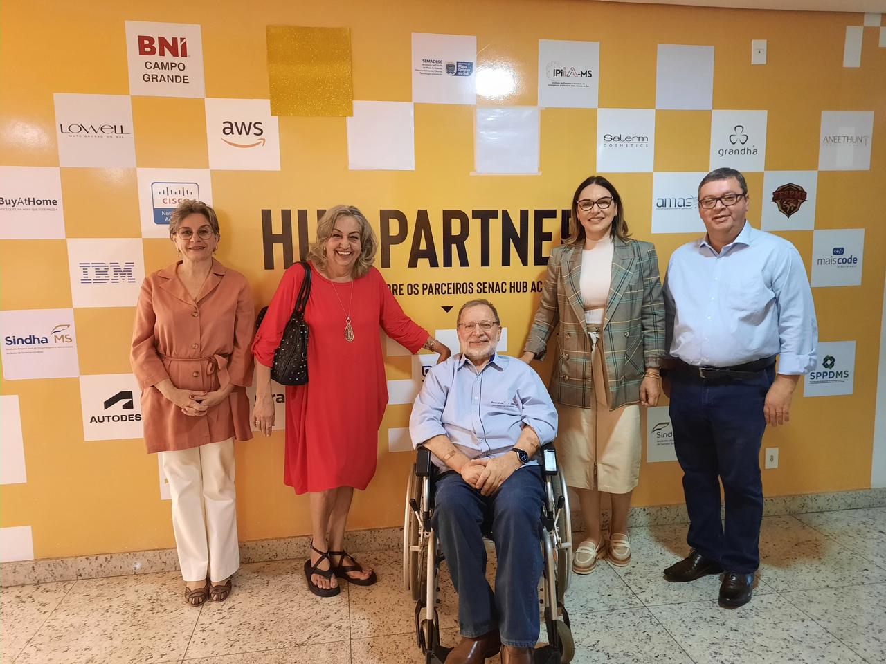 Nesta quarta-feira, 03/07, representantes do executivo municipal de Ponta Porã estiveram nas unidades do Senac e Sesc, em Campo Grande, para conhecer as ações e atividades desenvolvidas junto a alunos e beneficiários. A primeira-dama do município, Paula Consalter Campos, juntamente com o superintendente do EPROJ (Escritório de Projetos), Guilherme Augusto, o diretor de Políticas Públicas da Secretaria de Desenvolvimento Regional, Indústria, Comércio e Turismo, João E. B. Caetano, e a secretária de Desenvolvimento Regional, Indústria, Comércio e Turismo, Walquiria Capusso, foram recebidos pelo presidente do Sistema Fecomércio MS, Edison Araújo.