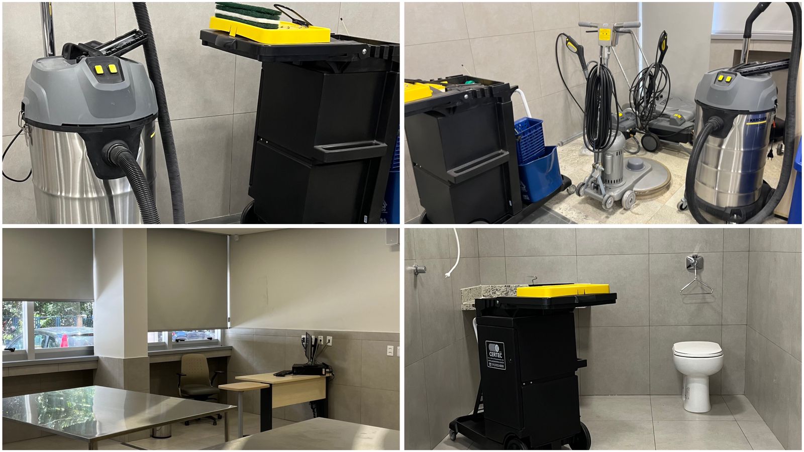 Estrutura robusta, inovadora, alinhada com as demandas do mercado. São maquinários, espaços de simulação como banheiros e lavanderia, contato com os mais diversos produtos e texturas de piso, por exemplo. A sala prática para os cursos e treinamentos, tanto cursos mais extensos, como o de Gerência e Organização de Condomínios, que a Iraci fez, representa situações reais encontradas nos condomínios e corporações.