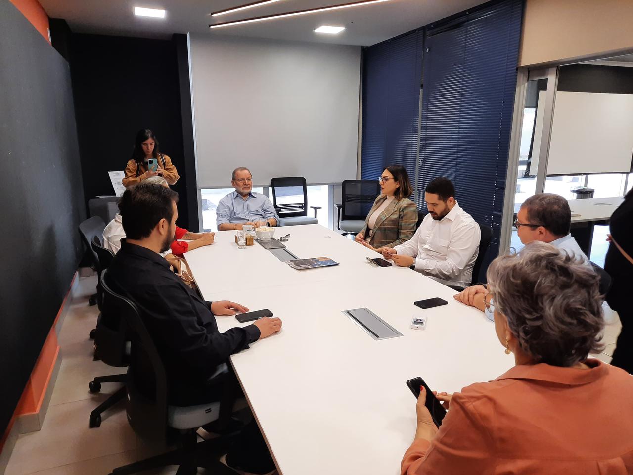 Nesta quarta-feira, 03/07, representantes do executivo municipal de Ponta Porã estiveram nas unidades do Senac e Sesc, em Campo Grande, para conhecer as ações e atividades desenvolvidas junto a alunos e beneficiários. A primeira-dama do município, Paula Consalter Campos, juntamente com o superintendente do EPROJ (Escritório de Projetos), Guilherme Augusto, o diretor de Políticas Públicas da Secretaria de Desenvolvimento Regional, Indústria, Comércio e Turismo, João E. B. Caetano, e a secretária de Desenvolvimento Regional, Indústria, Comércio e Turismo, Walquiria Capusso, foram recebidos pelo presidente do Sistema Fecomércio MS, Edison Araújo.