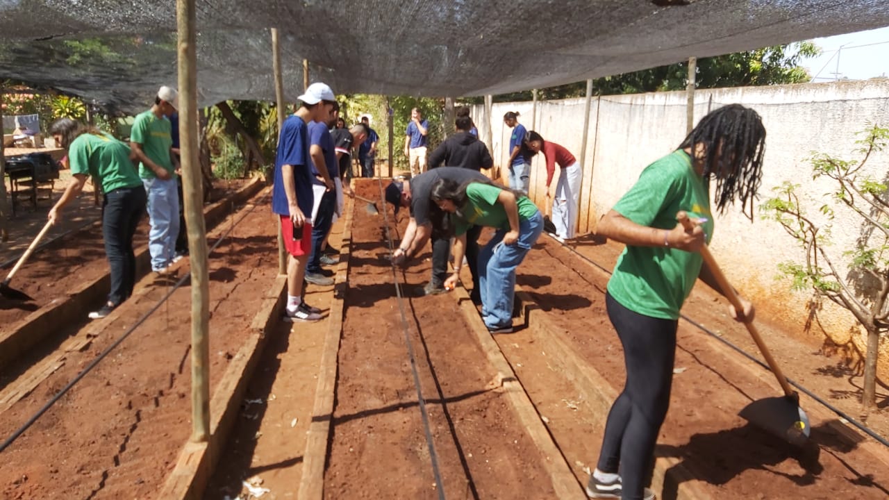 Sob supervisão do professor, os estudantes realizaram atividades de preparo do solo, adubagem e cultivo de hortaliças. O objetivo é que os alimentos produzidos sejam utilizados na cozinha da escola, contribuindo para a alimentação dos alunos.