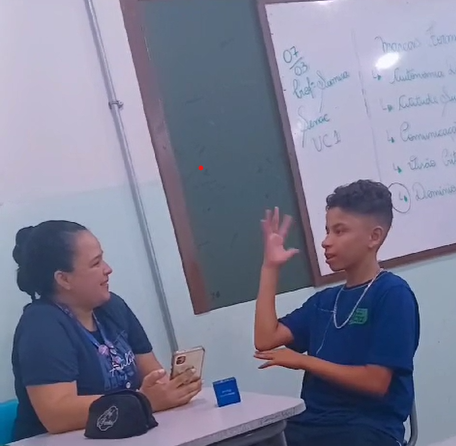Para o atendimento dos dois estudantes, Douglas da Silva, atendente de contact center do Senac MS, os ajudou a fazer todo o processo de matrícula na instituição, tanto do estudante Lucas, como da estudante Ana Clara, de 21 anos e também surda e inscrita no curso Técnico de Enfermagem no período noturno.