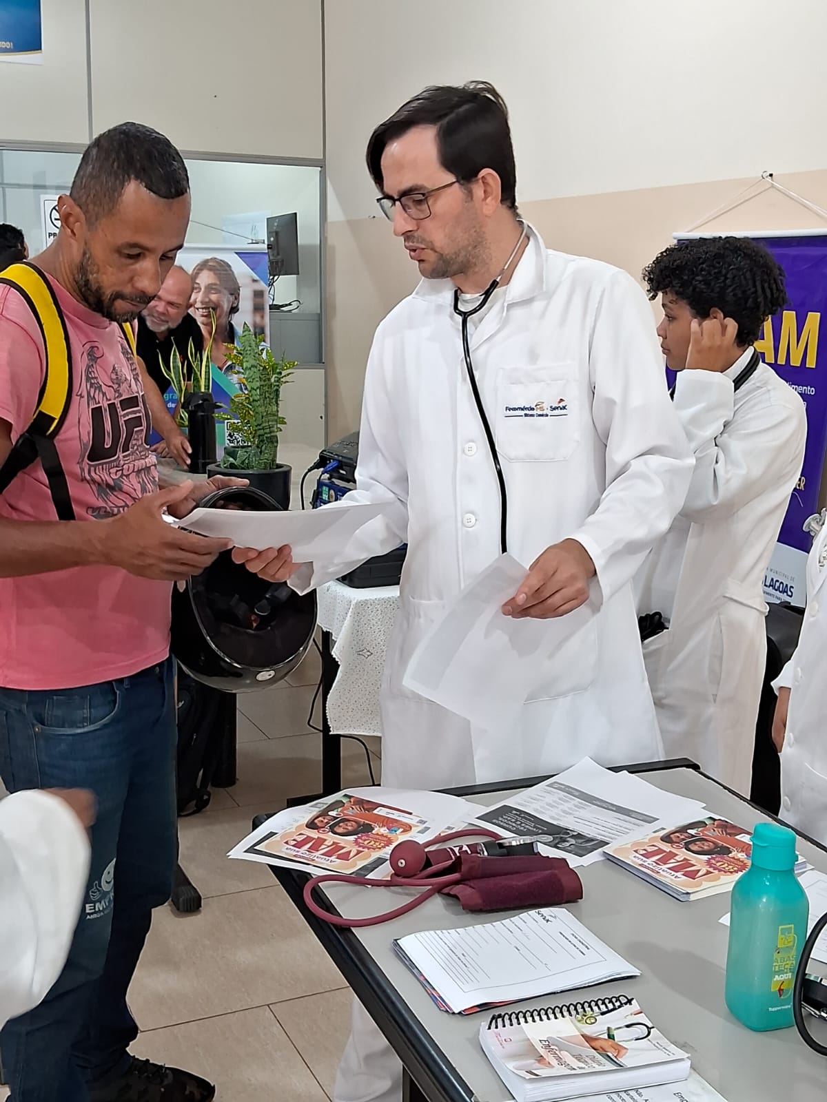 “Hoje tivemos nossa equipe de docente e alunos do curso Técnico de Enfermagem e equipe comercial, atendendo a ‘Semana do Trabalhador’, na ‘Casa do Trabalhador de Três Lagoas’. Teve palestra sobre hipertensão e aferição de pressão arterial, com divulgação dos cursos do programa MS Qualifica e de outros que estão com matrículas abertas”, explica o gerente da unidade do Senac Três Lagoas, Ivan Murgi.