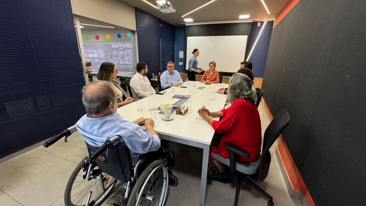 Nesta quarta-feira, 03/07, representantes do executivo municipal de Ponta Porã estiveram nas unidades do Senac e Sesc, em Campo Grande, para conhecer as ações e atividades desenvolvidas junto a alunos e beneficiários. A primeira-dama do município, Paula Consalter Campos, juntamente com o superintendente do EPROJ (Escritório de Projetos), Guilherme Augusto, o diretor de Políticas Públicas da Secretaria de Desenvolvimento Regional, Indústria, Comércio e Turismo, João E. B. Caetano, e a secretária de Desenvolvimento Regional, Indústria, Comércio e Turismo, Walquiria Capusso, foram recebidos pelo presidente do Sistema Fecomércio MS, Edison Araújo.