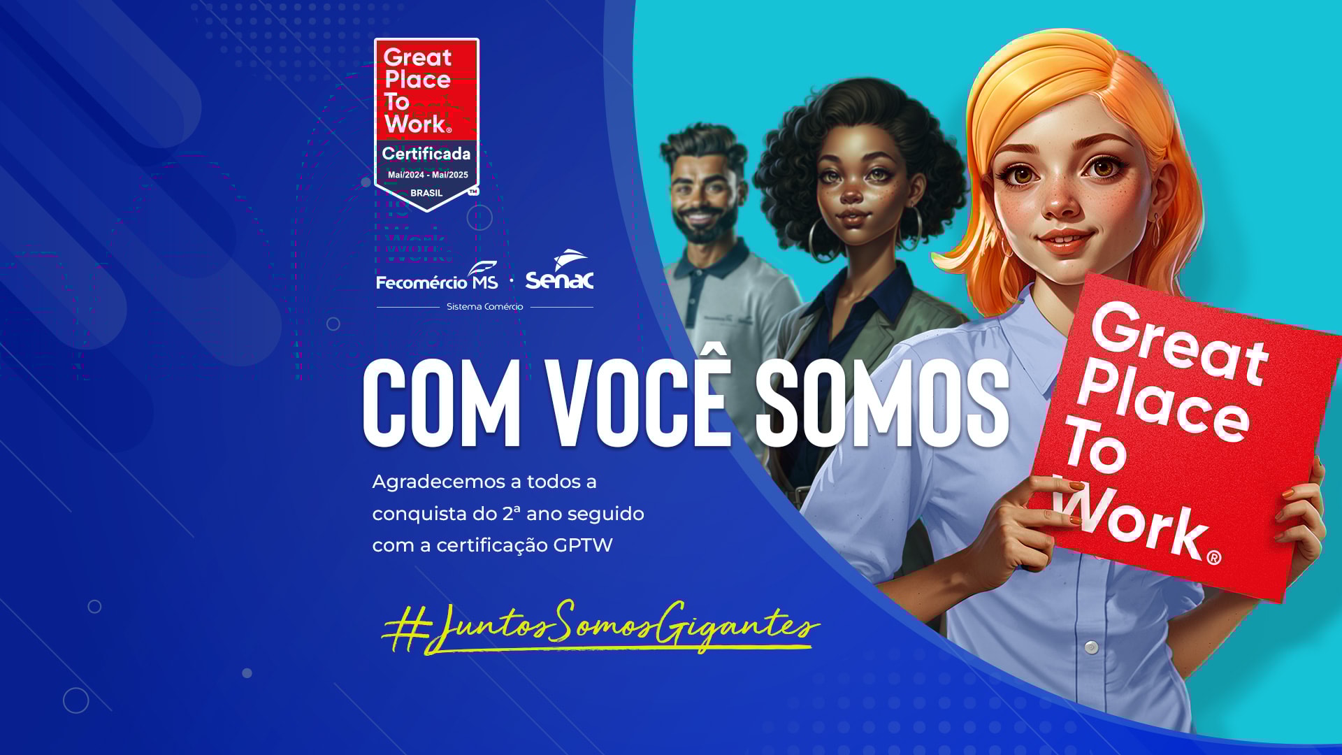 O Serviço Nacional de Aprendizagem Comercial de Mato Grosso do Sul, o Senac MS, foi novamente reconhecido como uma das melhores empresas para trabalhar pelo Great Place to Work (GPTW). Esta é a segunda vez consecutiva que a instituição recebe o selo, por excelência em seu ambiente de trabalho.