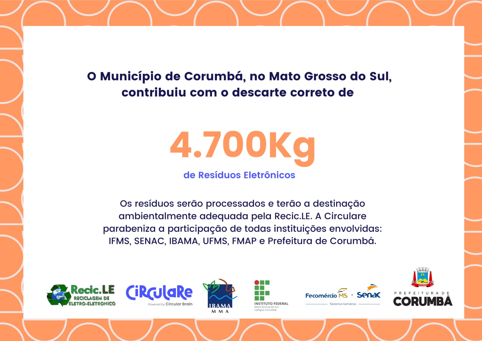Entidades como Fundação de Meio Ambiente, Circulare, IBAMA, Instituto Federal e a Prefeitura de Corumbá, uniram esforços para garantir que os resíduos tivessem uma destinação ambientalmente adequada.
