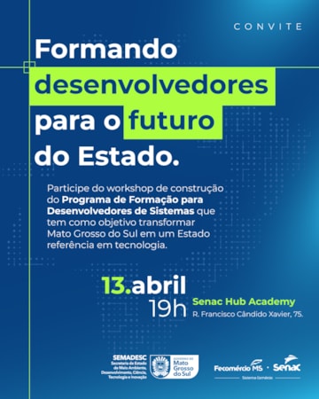 Campo Grande sedia workshop sobre formação de profissionais de TI no dia 13 de abril